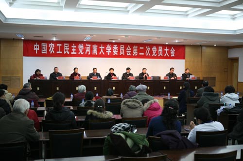 2008年1月10日下午,农工民主党河南大学委员会第二次党员大会在明伦校区新行政楼第四会议室召开。校党委常委、纪委书记王凌, 党委统战部相关负责人出席会议。开封市政协副主席、农工民主党河南省委副主委、开封市委主委蒋忠仆,开封市委统战部常务副部长王文生,原开封市人大副主任、农工民主党河南省委副主委、农工民主党开封市主委吴博亚,农工民主党开封市委副主委陈清、平晓雯等到会祝贺。会议由农工民主党河南大学委员会副主委唐文春主持。
