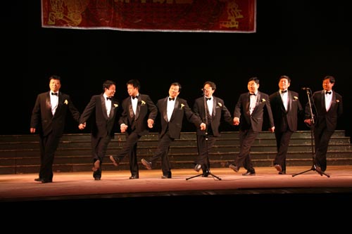 作为开场的幼儿舞蹈《健身娃娃》一出场就引来阵阵掌声,让大家仿佛看到了2008年的奥运火炬,看到了我国奥运键儿的希望;已成立6年多的教职工合唱团分别为大家演唱了红色歌曲联唱、男生小合唱、重唱和独唱曲目,满怀深情的歌声打动了在场所有观众的心;男生小合唱更是以声传情,幽默诙谐,博得阵阵喝彩;附小的童声合唱清澈纯净,好似天籁之音;刚刚成立不久的教职工舞蹈团的团员们表演了《惊蛰》和激情奔放的踢踏舞《踏响2008》;教职工剧团的表演也精彩不断:袁若娟老师演唱的京剧声音细腻圆润,路庆平老师的朗诵《祖国啊,我亲爱的祖国》向大家充分展示了语言的魅力和深厚的专业功力,王发曾和孙玉婷老师的配乐朗诵把《老人与海》演绎的惟妙惟肖。教师模特队的表演,踏着动人的旋律带着观众走进浪漫优雅的艺术殿堂。教职工艺术团团长姬群老师的《祝福祖国》作为结束曲把晚会推向了高潮。15个精彩的节目,无数次美的享受。整个晚会高潮迭起,精彩不断。