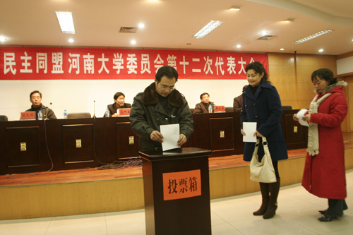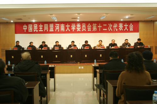 2007年12月26日下午,中国民主同盟河南大学委员会第十二次代表大会在新行政楼第四会议室召开。校党委副书记梁晓夏,党委统战部有关负责同志出席会议。开封市委统战部领导王文生、赵安慈,民盟开封市主委马同森等同志到会祝贺。会议由民盟河南大学副主委刘济良主持。