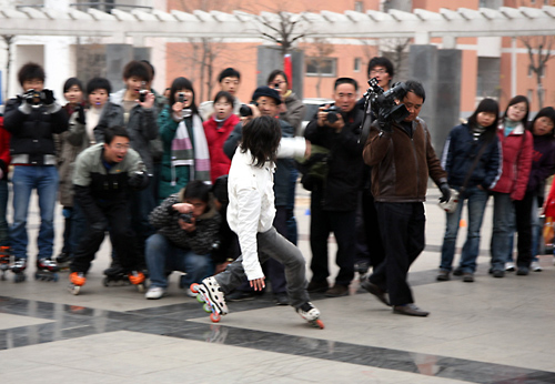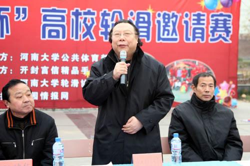 12月9日,由河南大学公共体育部主办、河南大学轮滑协会等单位承办的我校轮滑邀请赛在金明校区隆重举行。这是我校首次轮滑比赛,在全省高校也属首次。河南大学赵国祥副校长到会祝贺并致开幕词。开封市体委有关领导及103入侵乐队、健美操协会、奥翔跆拳道俱乐部、四色歌舞协等都前来献艺祝贺。
