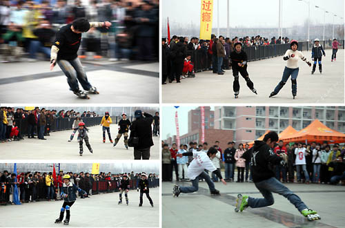 本次比赛以推广轮滑这项轻松、健身、时尚的运动,加强开封各高校间联系与交流为宗旨。参赛选手涵盖河南大学、开封大学、黄河水利职业技术学院、开封市教育学院等广大轮滑爱好者。开幕式上,精彩的轮滑平地花式表演和花式刹车表演让现场的观众叹为观止。轮滑邀请赛分为男、女子速滑,男、女子初级平花,男子高级平花,男子速度过桩等五项,激烈的速滑比赛,优美的平地花式比赛构成了整个邀请赛的主旋律。经过紧张的角逐,王雪迎、李亚超、王祎祯、申鹏、王敬等获一等奖;王晗、郑莹、程毅等获二等奖;李润冉、胡鑫等获三等奖。比赛于下午5时圆满结束。