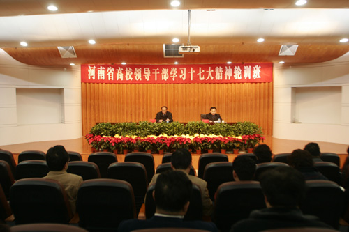 11月29日上午,全省高校领导干部学习十七大精神第三期轮训班(党委宣传部长、学工部长轮训班)在我校金明校区新办公楼二楼报告厅开班。省委高校工委、教育厅社政处副处长姜楠,我校校领导孟庆琦和来自全省各高校的150余名学员出席开班仪式。