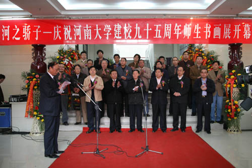 为了庆祝河南大学建校95周年,由我校主办,河南省美术家协会、河南省教育界书画家协会、河南省书画院协办,河南大学艺术学院、河南电视台《书画之声》栏目承办的河南大学师生书画精品展历时近一年时间,收集了河南大学优秀毕业生和在校工作教师的书画精品200多幅,作品题材丰富,紧跟时代,贴近生活,有健康向上的震撼力;艺术风格多样,秉承传统,立意创新,彰显不同作者的多元创意与艺术志趣;作品格调深遂,散发人文学养和理论思维,体现了高校艺术教育固有的特色,是建校九十五周年一份丰厚的献礼和教书育人成果的展示。同时,河南电视台《书画之声》栏目组还拍摄制作了21集专题电视片(每集10分钟,共210分钟)集中报道我校在书画界较有影响的教师及优秀毕业生的书画情缘及对书画事业的贡献。