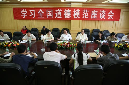 时值秋高气爽,正逢中秋佳节。2007年9月25日下午,全校学习全国道德模范座谈会在办公楼三楼会议室召开。校党委书记张秉义出席会议并作了重要讲话,党委宣传部、学生工作部、校团委等有关部门负责人及来自全校的19位青年师生代表参加了座谈会。会议由校领导孟庆琦主持。