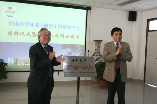 2007年9月18日下午,在我校环境与规划学院二楼报告厅,校长关爱和及著名华裔科学家、我校老校长许心武之子许靖华院士共同为河南大学环境与健康工程研究中心揭牌,标志着我校环境科学研究有了一个全新的创新平台。