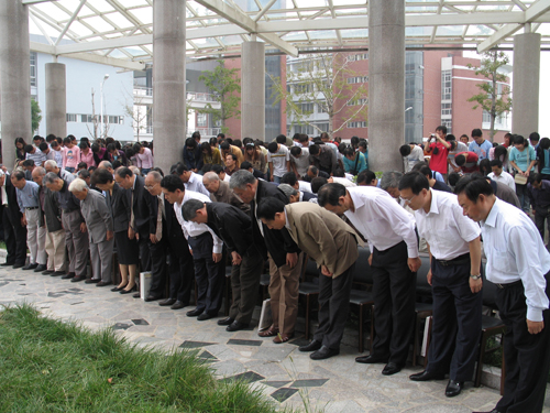 王耀同志发表讲话。他说,作为一名教育家和著名学者,周守正教授给后人留下了很多宝贵的财富。他认为周守正教授塑像的落成具有三方面的意义,一是铭记一个时代,以周守正教授为代表的一代教育工作者如何教书育人;二是弘扬一种精神,即老一代学人精心治学、锲而不舍的精神;三是凝聚一种人气,河南大学的师生在周守正教授精神的激励下,必将为河南教育事业的发展做出更大的贡献。