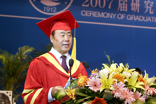 衷心祝福饱含深情,临行寄语鞭策前行。校党委书记张秉义代表学校党委和行政,向全体研究生表示热烈的祝贺,向为研究生培养工作付出辛勤劳动的全体导师和教职员工,向积极支持研究生顺利完成学业的各位家长和亲属们表示衷心的感谢。在回顾了近年来学校的发展历程之后,张秉义同志说,培养人才是学校的根本任务,而大力培养高层次、高素质、创新型人才,是我校建设全国一流大学的必然选择。张秉义同志向毕业生们提出了四点希望:一是终生学习,不断进取使自己永远走在时代和社会发展的潮头,获得个人知识、能力和事业的持续发展;二是砥砺品格,完善自我,在生活实践中陶冶健康高尚的人格,为自己的学习、工作和生活打下良好基础;三是秉承传统,服务社会,争取为国家、为社会做出更大贡献;四是牢记使命,毋忘母校,继续关注母校的改革和发展,提出意见和建议,提供支持和帮助,为母校更加美好的明天贡献力量。