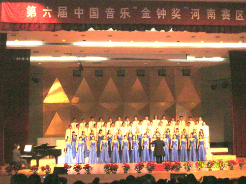 6月9日,我校研究生合唱团赴郑州参加中国“金钟奖”合唱选拔赛,一举夺得河南赛区第一名。研究生合唱团经过了两个多月的艰苦排练,在艺术学院陈家海教授的指挥下,以饱满的热情演唱了混声合唱《黄水谣》和无伴奏合唱《冬不拉的琴声》两首作品,美妙的歌声感染了全场的听众,经过激烈角逐,研究生合唱团取得了98.5分的骄人成绩,为参加全国复赛、决赛奠定了良好的基础。