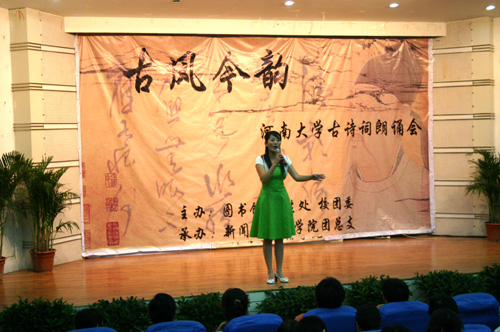 5月30日晚,我校科技馆二楼报告厅不时传出热烈的掌声。由我校图书馆、学生处、团委联合主办,新闻与传播学院承办的“古风今韵”河南大学古诗词朗诵会在这里举行。河南大学副校长曹奎及图书馆、学生处、团委的相关负责人出席了朗诵会。