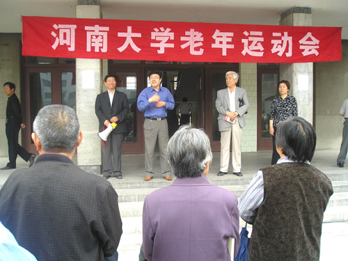 校党委副书记郑邦山代表学校党政领导分别参加两个校区老年运动会开幕式,并发表了热情洋溢的祝辞。他说:“我校举行老年运动会是一个好形式、好传统,大家通过参加运动会,老朋友久违喜逢,互相问候,交流了感情,提高了健康的水平。”他希望老同志们能在运动会中赛出友谊,赛出成绩,赛出风格,还嘱咐大家要注意安全。