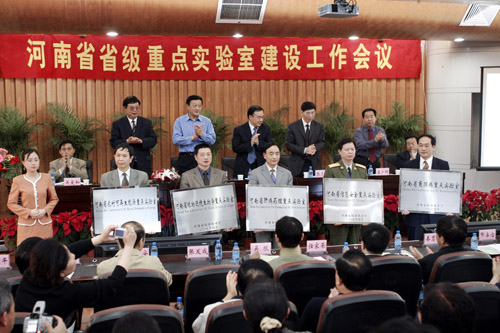2007年4月30日上午,河南省省级重点实验室建设工作会议在我校金明校区行政楼二楼报告厅隆重举行。河南省人民政府副省长徐济超,国家科技部基础研究司司长张先恩,河南省科技厅厅长赵琛、副厅长孟少辉,开封市副市长陈国祯,河南大学党委书记张秉义、校长关爱和出席会议。全省省级重点实验室及依托单位的负责同志,有关高等院校、科研院所及部分企业的负责同志与会。会议由孟少辉同志主持。