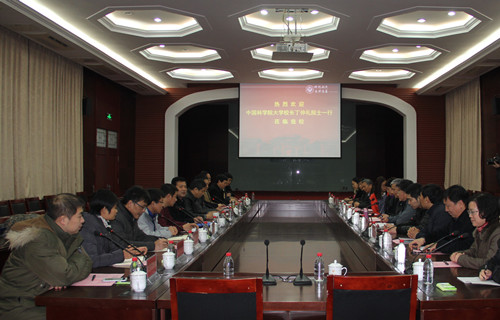 1月20上午,中国科学院大学丁仲礼校长一行来我校就本科生招生、培养,研究生联合培养等问题进行合作洽谈,受到校党委书记关爱和、校长娄源功的热情接待。双方在明伦校区小礼堂举行了座谈会,学校党政办、教务处、科研处、研究生院以及相关院系等十多家单位的负责人参与座谈。关爱和主持座谈会。