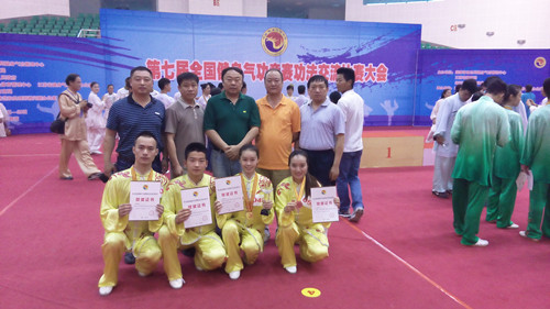 由我校体育学院学生组成的河南省代表队在主教练贾亮老师的带领下经过两天的激烈角逐,共获得易筋经女子个人赛第一名(何晓林)、六字诀女子个人赛第三名(杨光)、八段锦男子个人赛第三名(李冀冉)、五禽戏男子个人赛第五名(卢金亮)和五禽戏集体赛三等奖的优异成绩。