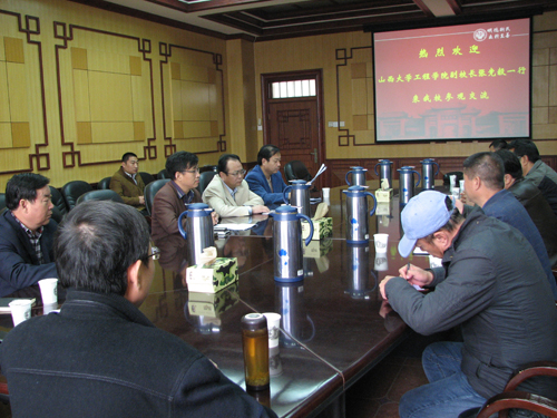 2012年10月29日上午,山西大学工程学院副校长张竞毅一行10人来校参观考察,受到我校的热情接待,我校副校长邢勇以及相关部门的负责同志在明伦校区新办公楼二楼会议室会见了客人。