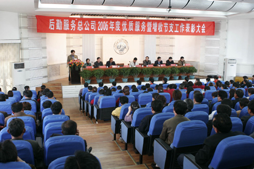 4月19日下午,我校后勤服务总公司2006年度优质服务暨增收节支工作表彰大会在明伦校区科技馆二楼报告厅隆重召开。校领导梁晓夏、丁庭选出席并讲话。后勤服务总公司总经理何喆作题为《科学管理,提高质量,健全优质服务工作体系》的报告,副总经理何五一宣读了优质服务暨增收节支工作先进集体和个人的表彰决定,并命名若干个优质服务示范窗口和示范岗,200多名后勤职工与会。大会由总公司党总支书记孙铁主持。
