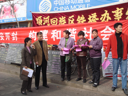 3月26日上午,我校保卫处参加了开封市市和顺和区综合治理宣传活动。这次宣传活动以“打造平安开封、构建和谐社会”为主题,活动在学院门玉祥大酒店附近举行。为搞好这次宣传活动,我校保卫处制作了大型横幅并印制了宣传传单。在活动期间,通过悬挂横幅、发放宣传传单对治安综治工作进行了宣传,收到了较好地宣传效果。