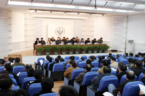 一元复始,万象更新。2007年3月8日上午,全校中层干部会议在科技馆二楼报告厅召开。校领导张秉义、关爱和、郑邦山、赵国祥、梁晓夏、丁庭选、曹奎、宋纯鹏、王凌、关学增、王发曾、郭天榜、赵振海、史全生、孟庆琦出席会议。全校各单位、各部门处级领导干部与会。会议由校党委副书记郑邦山主持。