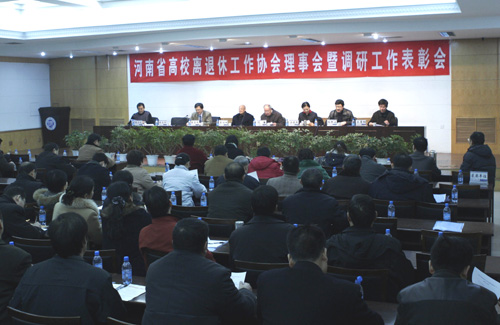 2007年1月26日上午,河南省高校离退休工作协会理事会暨调研工作表彰会在我校新行政楼第四会议室开幕。协会名誉会长、省人大原副主任范濂,协会名誉会长、省政协原副主席、河南大学原校长李润田,省老干部局副局长汪晓微、省直处处长卫居阳,协会会长、河南师范大学党委书记张亚伟,河南大学党委副书记郑邦山等出席会议。来自全省数十所高校的代表与会。会议由协会秘书长杨令记主持。