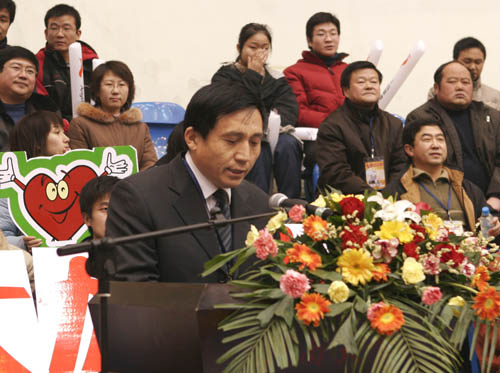 雄壮的国歌声后,校长关爱和发表了热情洋溢的开幕辞,他代表河南大学四万余名师生对各位领导和来宾的到来表示欢迎,并预祝本届比赛圆满成功。关爱和同志表示,河南大学历来高度重视学生体育工作,作为本次赛事的承办者,我校将竭尽全力做好各项工作,为所有裁判员、教练员和运动员提供优良的服务,“让友谊、欢乐、和谐、竞争充满赛场,把本届比赛营造为一次高水平的篮球盛会”。随后,校党委书记张秉义宣布本届比赛正式开幕。
