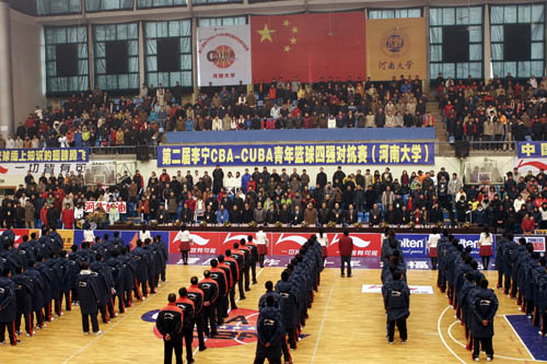 CBA青年队与CUBA谁更强?河大男篮能否借主场之利再续黑马传奇,一飞冲天?华侨大学男篮能否成功卫冕,成为“王中王”?2007年1月4日下午,经过精心筹备,备受瞩目的第二届李宁CBA-CUBA男子篮球四强对抗赛在我校正式拉开帷幕。国家体育总局副局长、篮球管理中心副主任胡加时,CUBA组委会常务副主任龚培山,大篮协执行主席、恒华集团董事长张宁飞,中国篮协技术部主任张雄,上海市大学生体育协会主席孙全兴,大篮协副主席兼副秘书长陈南生,以及河南大学党政领导班子全体成员出席开幕式。开幕式由本届比赛组委会副主任、河南大学副校长赵国祥同志主持。中央电视台第五套节目对随后的比赛进行了录播。