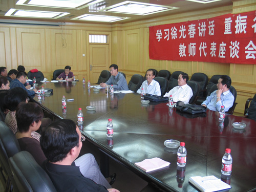 座谈中,大家畅谈了学习徐光春讲话的感受,分别就我校人才的培养使用、学科建设、和谐校园的构建以及学术交流、资源的开发引进等问题发表了自己的看法,提出了宝贵的建议。曾在国外访过学的几位同志还谈到了国外高校一些有借鉴意义的信息。话语之中充满了对母校的深厚感情和重振河大的责任感。