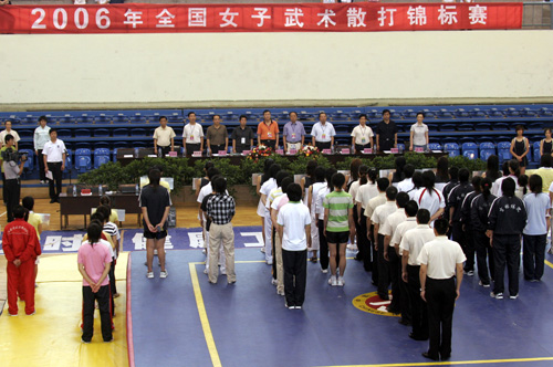 6月21日上午,2006年全国女子武术散打锦标赛在我校体育馆隆重开幕。国家体育总局武术运动管理中心主任王筱麟、河南省体育局局长韩时英、我校副校长赵国祥、国家体育总局散打部处长周金虎、省体育局竞技体育处处长马宏、开封市体育局局长李国胜、省武术运动管理中心副主任李婕等领导出席开幕式。