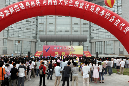 2006年6月7日上午,第四届“挑战杯”河南省大学生创业计划竞赛决赛开幕式在我校金明校区礼仪广场隆重举行。团中央学校部副部长陈光浩,省科学技术协会副主席何凤莲,省教育厅学生处副处长贺庆,开封市副市长王学杰,校领导郑邦山、黄亚彬、赵国祥及部分兄弟院校的领导出席了开幕式。开幕式由共青团河南省委员会副书记王丽主持。
