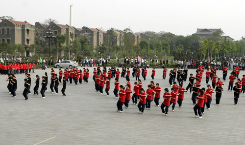 4月27日下午,我校第四届学生太极拳大赛在金明、明伦两校区同时举行。共有来自包括文理试验班在内的23支代表队参赛。副校长郭天榜、梁晓夏分别在两个校区的开幕式上致辞。校体委、党委宣传部、教务处、学生处、校团委、公共体育教研部和各学院相关领导出席了开幕式。