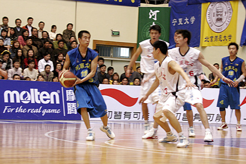 西北区男篮的决赛是卫冕冠军太原理工与东道主河南大学的颠峰对决。前者七年来在本区独孤求败,而后者无疑是本届比赛人气最盛,进步最快的球队。在上届比赛两队交手时,太原理工在上半场只领先6分的情况下突然发力,以闪电战在第三节甩开对手20分,并最终以91:69取胜。当时,球队内线核心王振富还未受伤。而今两队时过境迁,此消彼长,或许是受到了之前西亚斯对阵太原理工的神勇表现,以及女篮决赛中,西安交大险些“擒王”的鼓舞,踞有主场之势的河南大学队自然不满足于仅仅打入决赛,他们向西北王的“霸权”发起了挑战。