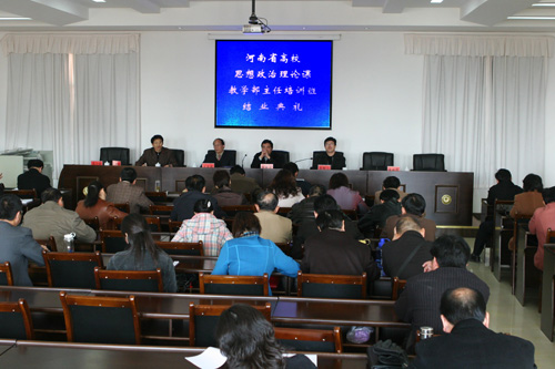 在河南省高校工委、教育厅社政处的领导和安排下,在河南大学党委宣传部和马列德育部的通力合作、精心组织下,河南省高校思想政治理论课教师培训基地第21期(高校思想政治理论课教学部主任)培训班于2005年10月17日至11月25日在河南大学成功举办,来自全省各高校的思想政治理论课教学部主任63人参加了培训班。在一个多月的学习过程中,大家认真学习了中央16号文件;中宣部、教育部5号、9号文件,深刻理解中央有关思想政治理论教育的精神;各院校交流了近年来思想政治理论课的教育教学经验;讨论、修改了《中共河南省委宣传部、中共河南省委高校工委、河南省教育厅关于进一步加强和改进高等学校思想政治理论课的实施意见》(征求意见稿);聆听了教育部社政司领导和专家的报告,了解了思想政治理论课新课程设置、内容、方法、教材、实践环节和评价体系等方面的最新动态信息;到省内外相关高校进行了学习考察,相互交流了思想政治理论课的教育教学经验等。培训班达到了预期目的,为我省高校06年秋季顺利实施思想政治理论课课程设置新方案作了良好铺垫。