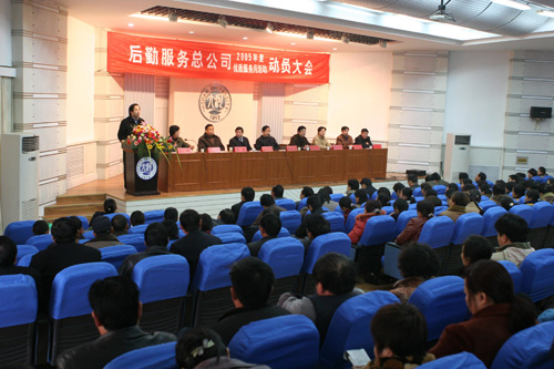 11月22日上午,我校后勤服务总公司2005年度优质服务月活动动员大会在科技馆二楼报告厅隆重召开。副校长史全生出席会议并讲话,校党委宣传部、总务处、校团委、校园管理处、学生处等职能部门的负责人到会祝贺,总公司近300名职工参加动员大会。总经理何喆作动员报告,副总经理何五一宣读了《后勤服务总公司关于深入开展2005年优质服务月活动的通知》,从组织领导、进度安排、评优奖先等方面对活动作了周密部署。大会由总公司党总支书记孙铁主持。