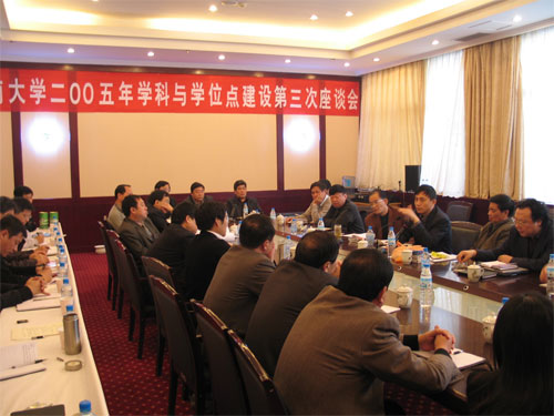 2005年11月8日,河南大学2005年学科与学位点建设第三次座谈会在济源宾馆举行。校领导关爱和、王发曾、黄亚彬、赵国祥,部分学院、实验室及有关职能部门负责人与会。会议由校长关爱和主持。