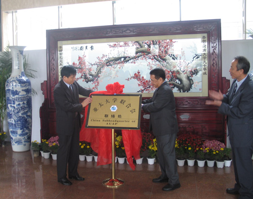 2005年10月12日上午,亚太大学联合会联络处揭牌仪式在我校新行政楼二楼大厅举行。在与会人员热烈的掌声中,亚太大学联合会秘书长、世界大学校长联合会副主席乌玛力和我校校长关爱和共同为亚太大学联合会联络处揭牌。副校长黄亚彬主持了仪式。