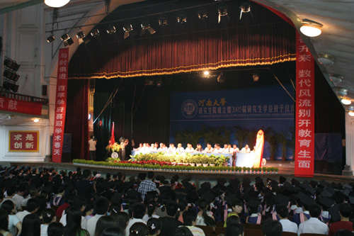 揭牌仪式上,校长关爱和表示,河南大学决心以试办研究生院为契机,积极建立研究生教育发展的规范保障体系,积极研究新形势下研究生教育的发展规律,不断完善管理机制,继续健全管理机构,全面提高管理水平,彻底规范管理手段,继续深化研究生教育改革,促进河南大学研究生教育健康有序发展。为社会培养更多的高层次、高水平、具有创新能力的人才,为全面建设小康社会、实现中原崛起,提供强有力的人才保障和智力支持。