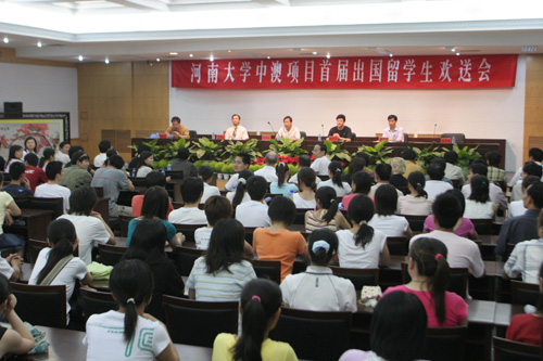 6月29日下午,国际教育学院赴澳留学生欢送会在新行政楼第四会议室召开。校党委副书记郑邦山、副校长史全生及党委宣传部、国际交流处、学生处、校团委、教务处、总务处、财务处等部门有关负责人与会,热烈欢送我校首批赴澳的71位留学生。欢送会由国际教育学院副院长王泽民主持。