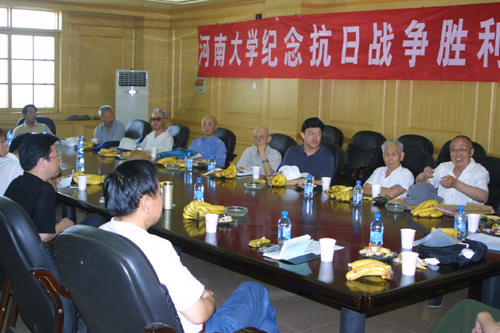 2005年6月22日上午,“河南大学纪念抗日战争胜利60周年座谈会”在办公楼三楼会议室举行。6位年逾古稀的我校抗战老战士在座谈会上回忆了他们充满激情的艰难的抗日岁月。校党委副书记郑邦山出席了座谈会,校离退休干部工作处处长陈春鹏、党委书记郭玉英等和我校十几名学生代表参加座谈会。座谈会由党委宣传部部长李文山主持。