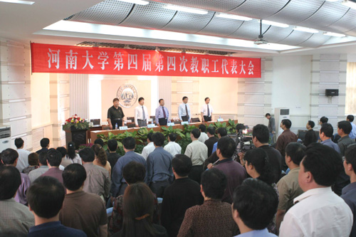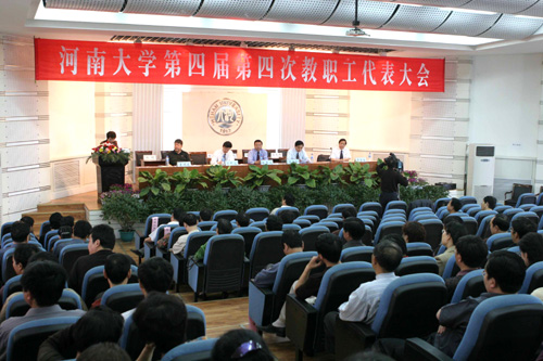 2005年4月29日至30日,河南大学第四届教职工代表大会第四次会议在科技馆二楼报告厅隆重召开。校领导张秉义、关爱和、郑邦山、王发曾、郭天榜、袁顺友、史全生、赵国祥出席会议。校党委副书记郑邦山、工会主席袁顺友分别主持了开幕式、闭幕式。