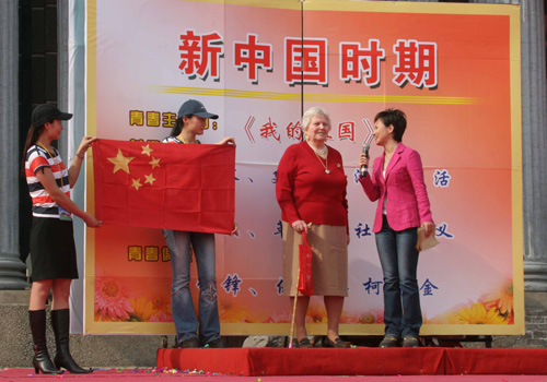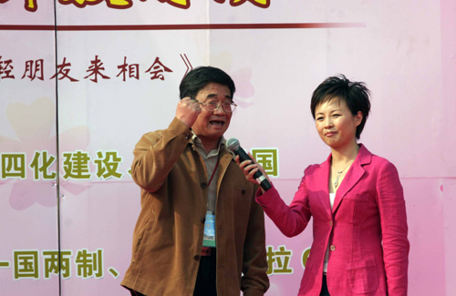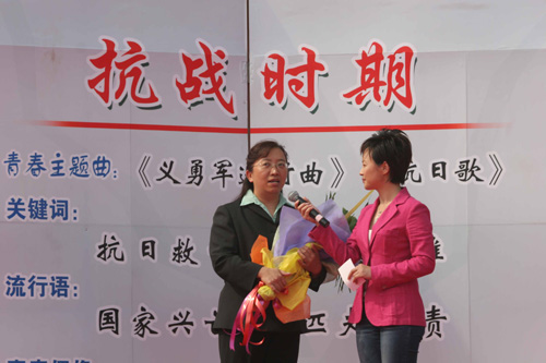 在音乐声彩炮声中,我校党委书记张秉义、河南电视台台长、总编辑周绍成先生为设置在舞台正中间《青春辞典》揭开红绸,正式拉开了节目的帷幕。《青春辞典》记载了各个不同的时代人们对于青春的理解,青春的记忆就被封存在这本辞典当中。《青春辞典》共分四个时期:抗战时期,新中国时期,改革开放时期,新世纪。特邀嘉宾著名校友、作曲家马可的女儿马海琳女士,华籍美国人、我校外语学院教授吴雪莉老师、王发曾副校长,来自河南农村的天津科技大学的青年志愿者白亚丽,分别作为青春代言人揭开《青春辞典》的四个时代,和现场观众共同追忆了60多年来中国曾经走过的苦难历程和光辉岁月,再现了一代又一代热血青年英勇奋斗、报效祖国的青春风采。特邀嘉宾、电影《英雄儿女》中王成的扮演者——著名的电影表演艺术家刘世龙先生,介绍了他在《英雄儿女》中扮演王成的经历,他深情地说:“50多年前,我在河南这片神奇的大地上度过了一段难忘的战斗岁月;今天,2005年4月25日,我又一次来到这片英雄辈出的热土,在马可先生的母校与河大的师生见面,我将终生难忘。”刘世龙先生和8000多名观众一起,充满激情地重温电影《英雄儿女》中最经典的一句台词:“为了祖国,向我开炮!” 英雄的呐喊激荡着我们胸中的热血,现场气氛达到了最高潮。