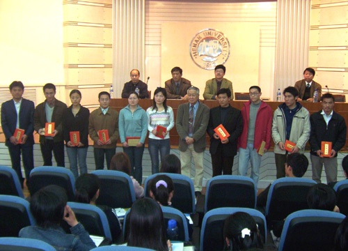 “丘才廉论文奖”是受丘才廉先生之托,由河南大学犹太研究所主办的论文比赛,旨在增强同学们对犹太文化的了解并学习借鉴犹太文化,从而为我国社会主义建设作贡献。仪式上,丘才廉先生介绍了设置论文比赛及建立奖学金制度的原因和目的。郑邦山同志对丘先生的到来表示热烈欢迎并对他给予历史文化学院犹太研究工作的支持表示感谢。随后丘先生和郑邦山同志等为获奖同学颁发了证书和奖金。