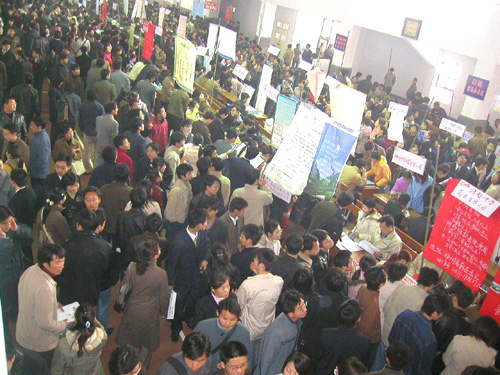3月10日上午,校园内彩旗招展,气氛热烈,来自全国各地的200余家用人单位的代表齐聚河南大学,我校2005届毕业生供需洽谈会在校田径馆隆重举行。