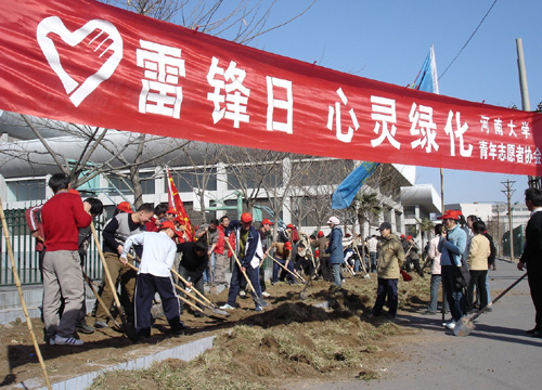 据悉,校团委决定以3月份“学雷锋活动月”为契机,广泛开展以“弘扬雷锋精神,参与志愿活动,共建和谐社会”为主题的纪念活动。包括 “雷锋日—心灵绿化”美化校园志愿服务活动、 “让春天更美丽”主题征文活动、“为古城添新绿”义务植树等系列活动。