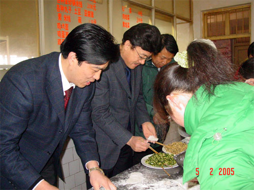 随后,陶明伦等团省委领导在郑邦山等领导的陪同下,来到回民食堂,与同学们一起包饺子,和他们共进午餐。“送饺子”是团省委领导在给同学们“送路费、送岗位、送温暖”“三送”之外的特别奉献,希望留校的同学,在春节期间吃得舒心,过得顺心,学得安心。