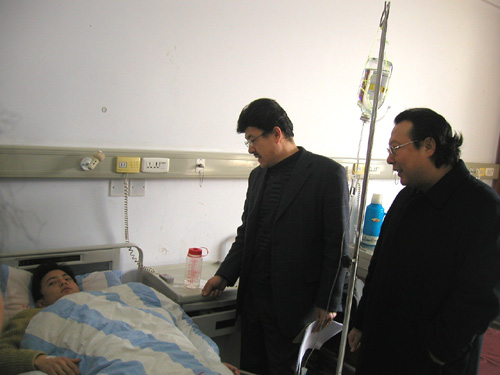 元月27日是寒假的第一天,大部分学生已陆续离校回家过年,但仍有一些同学因生病住院而不能按时回家。这些同学的情况牵动着学校领导的心,当日上午一大早,校党委副书记郑邦山、副校长赵国祥在学生处处长张顺利、团委书记周保平等的陪同下赶往校医院去看望和慰问他们。