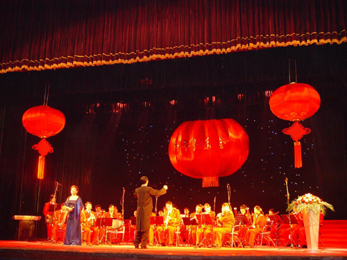 火红的灯笼,精致的中国结,激昂的乐曲,跳动的音符,把12月28日晚的大礼堂映衬得格外喜庆而迷人,我校首次学生军乐团成立四周年专场新年音乐会在这里隆重举行。校党委副书记郑邦山、副校长王发曾与我校近千名师生一同观看了演出。