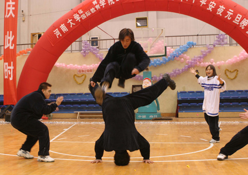 “嵩岳苍苍,河水泱泱,中原文化悠且长……”12月24日晚,河南大学体育馆内,100多名来自不同国家的留学生深情唱起的河南大学校歌,赢得了学子们阵阵热烈的掌声。当晚,由该校国际教育学院与体育学院联合为留学生举办的“平安夜晚会”隆重举行,200多名留学生与河大学子欢聚一堂,共庆圣诞。