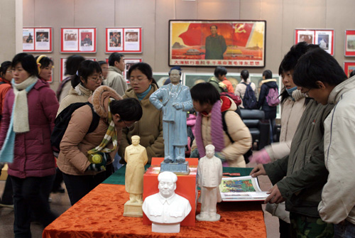 展出吸引了数千名师生前来观看欣赏,在巨型油画“大海航行靠舵手,干革命靠毛泽东思想”前,艺术学院02级的学生陈媛媛激动地说,通过观看展出,我了解到了毛主席为中国革命艰苦奋斗的不平凡的一生,作为一名新时期的大学生,我一定会不辜负革命先辈的殷切期望,努力学习,刻苦奋斗,为祖国的繁荣与富强贡献出自己的力量。