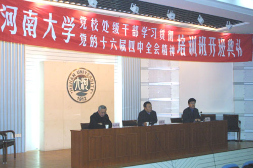 据悉,培训班在接下来的时间里还将邀请我校党委副书记赵豫林、哲学与公共管理学院王德木教授以及《河南大学学报》刘献教授分别作专题报告,并组织各基层党委、党总支、党支部对十六届四中全会精神进行讨论。