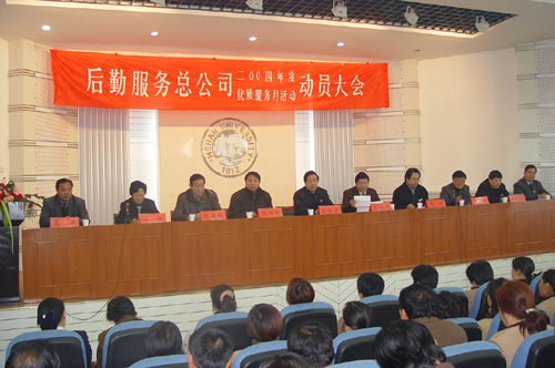 11月18日下午2时30分,我校后勤服务总公司在科技馆二楼报告厅召开2004年度优质服务月动员大会。来自后勤服务总公司的300多名职工代表参加会议,副校长史全生出席会议并讲话,校工会、学生工作部、总务处等有关职能部门的负责人与会,动员大会由总公司党总支书记孙铁同志主持。