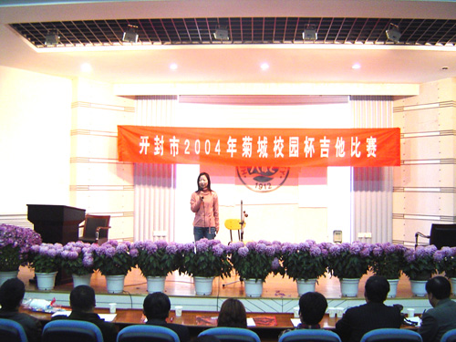 2004年10月31日上午,我校科技馆二楼报告厅内琴声飞扬,开封市第四届“菊城校园杯”吉他比赛开幕式在这里举行。此次活动是由河南大学团委、开封市音乐舞蹈家协会、开封市群众艺术馆、开封市吉他协会共同主办,由我校音素吉他协会承办。该赛事曾经成功举办了三届,为丰富开封市各院校的校园文化做出了积极的贡献。