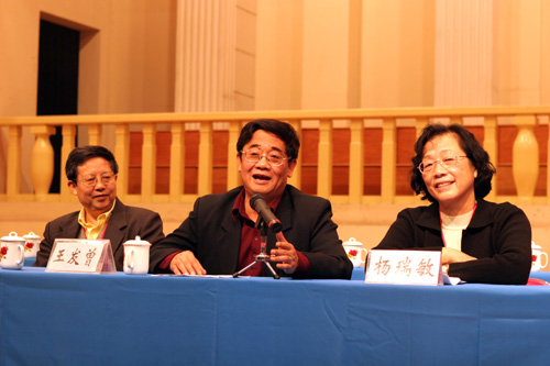 王发曾同志致辞,对合唱学术委员会的诞生、会议的召开和代表们的到来表示热烈的欢迎。在简要介绍过我校的基本情况后,王发曾同志说,河南大学艺术学院是河南省历史最悠久的高等艺术学府,曾经拥有一批全国享有较高知名度的教师,培养了许多高水平的艺术人才,也汇集了众多有影响力的艺术教育家。我们有理由相信,未来的河南大学将拥有很多优秀的音乐工作者。王发曾同志呼吁高师合唱指挥教学工作者把艺术实践放在重要位置,亲历亲为,并尽可能多地给学生创造上台指挥的机会。希望大家把最新最深刻的学术观点带来,把对河大最美的印象带走。